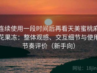 • 这款天美蜜桃麻花果冻在连续使用一段时间后,整体体验呈现出平衡的甜度、清新的桃香、以及果冻与麻花的层次感。对于追求日常轻甜、并希望口感有变化的新手用户来说,具有较高的可接受度与稳定性。