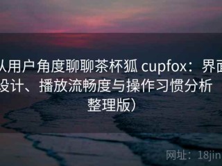 随着数字媒体内容的爆炸式增长,用户对各类视频与音频播放应用的要求越来越高。作为一种新兴的播放器应用,茶杯狐(cupfox)凭借其简洁高效的界面设计与出色的流畅度吸引了大量用户的关注。本文将从用户的角度出发,分析茶杯狐在界面设计、播放流畅度以及操作习惯方面的表现,并给出一些使用体验的总结。